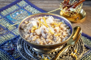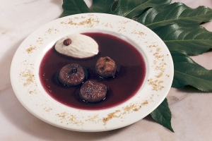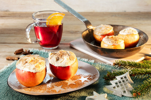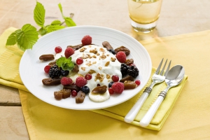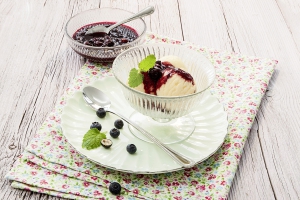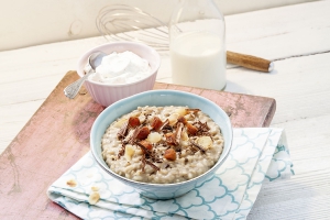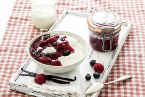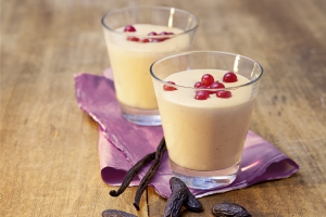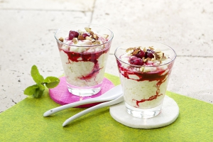 Zimt-Hirse-Creme mit heißen Vanille-Kirschen