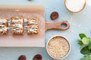 Aprikosenriegel, Kokos Riegel mit Quinoa und weißer Schoko