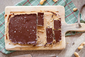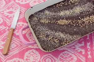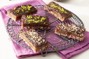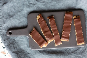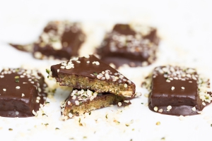 Schoko-Riegel mit gepufftem Reis, Hanf, Chiasamen und Buchweizen