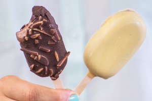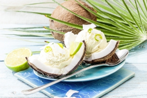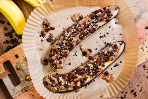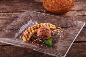 Banane, gegrillt, mit Samba-Kokos-Eiscreme