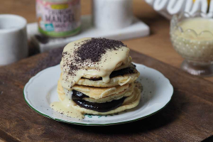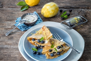 Walnuss-Pfannkuchen mit Mango & Quarkcreme