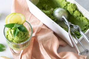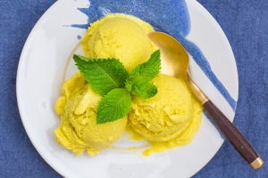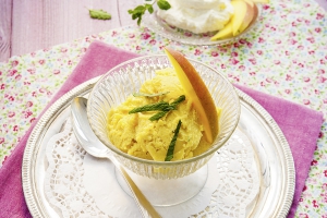 Aprikosen-Zimt-Eis mit gerösteten Mandeln