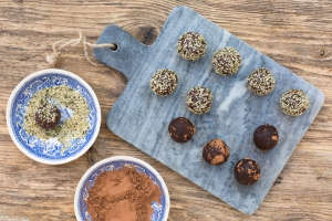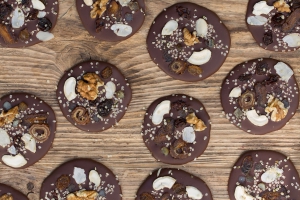 Schokoladen Konfekt mit Pekannüssen und Cashews, vegan