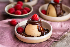 Soufflée mit Quark, Birne und Tonka-Bohne