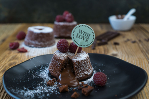 Törtchen mit Schokolade, Leinöl und Himbeeren