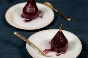 Rotwein-Birnen mit Kokosblütensirup, Zimt und Vanille
