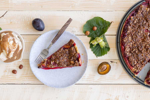 Pflaumenkuchen mit Streusel und Haselnusssahne
