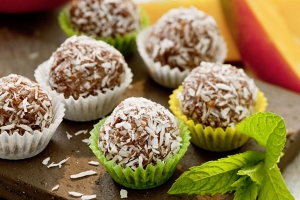 Kürbis Cup Cakes mit Kokos Mandelmus und Datteln